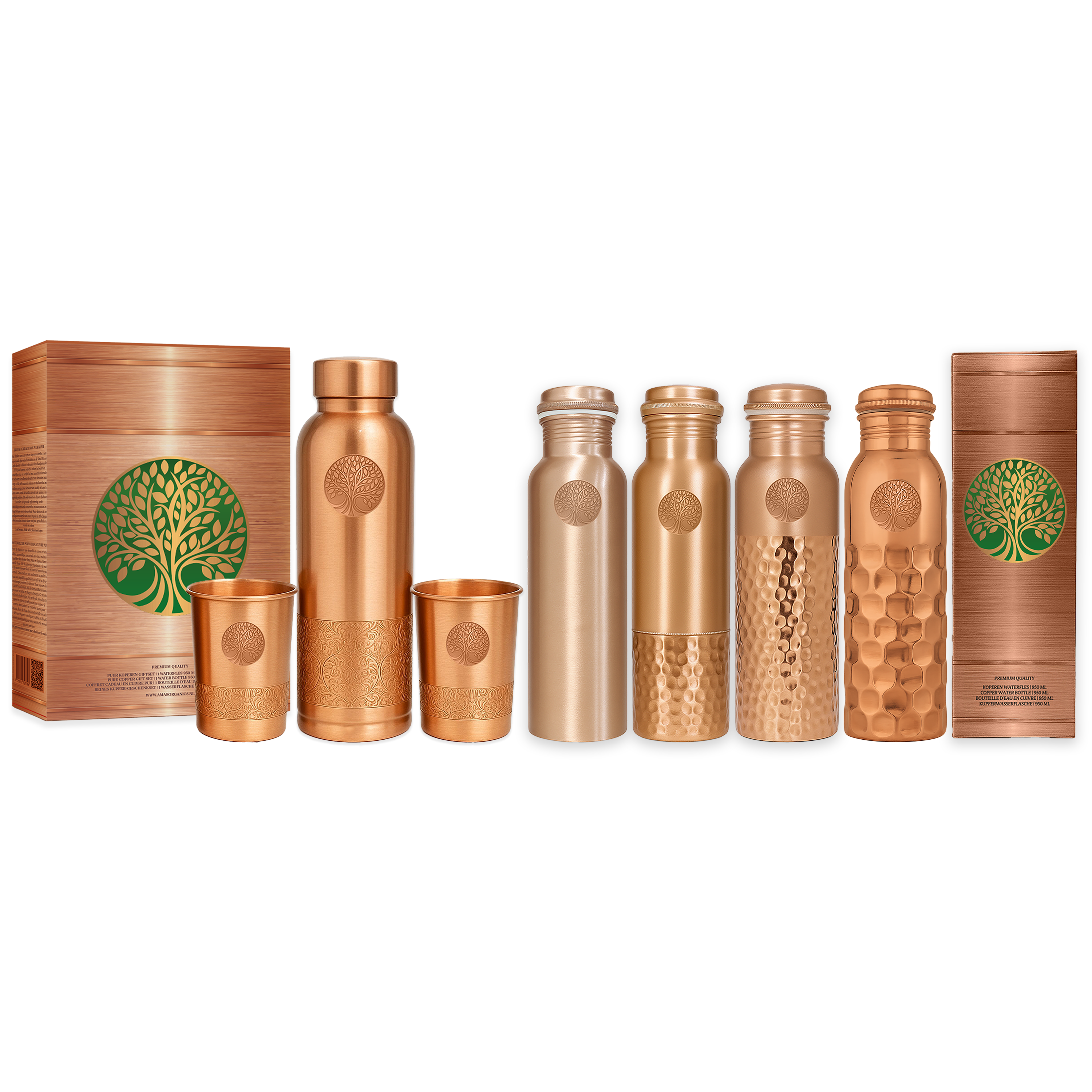 AMAS ORGANICS | 100% PUUR KOPEREN WATERFLES SEQUENCE | PREMIUM QUALITY | HANDGEMAAKT EN UNIEK | 950 ML | 350 G